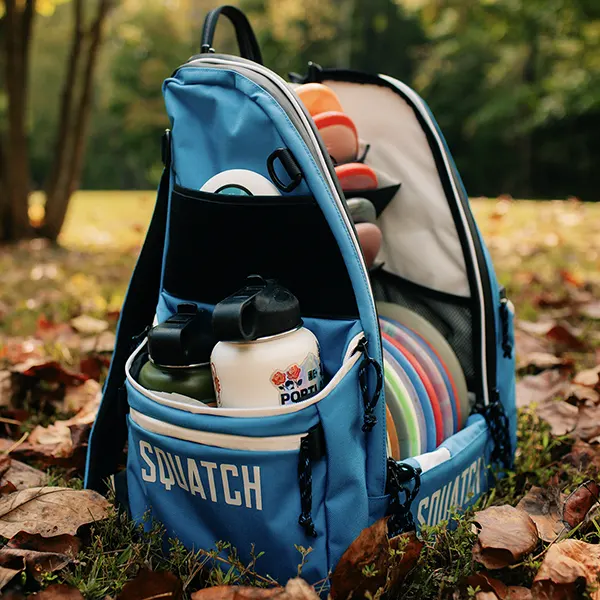 mycket förvaringsutrymme! Det finns fack till det mesta; discar, kläder, mobil/nycklar etc. Jag uppgraderade från en "medium bag" till denna. Den väger en hel del på ryggen om main facket samt de mindre "hyllorna" är fyllda, uppskattningsvis 3,5-4,5kg. Den är dock är bekväm att ha på ryggen då den är bra vadderad.